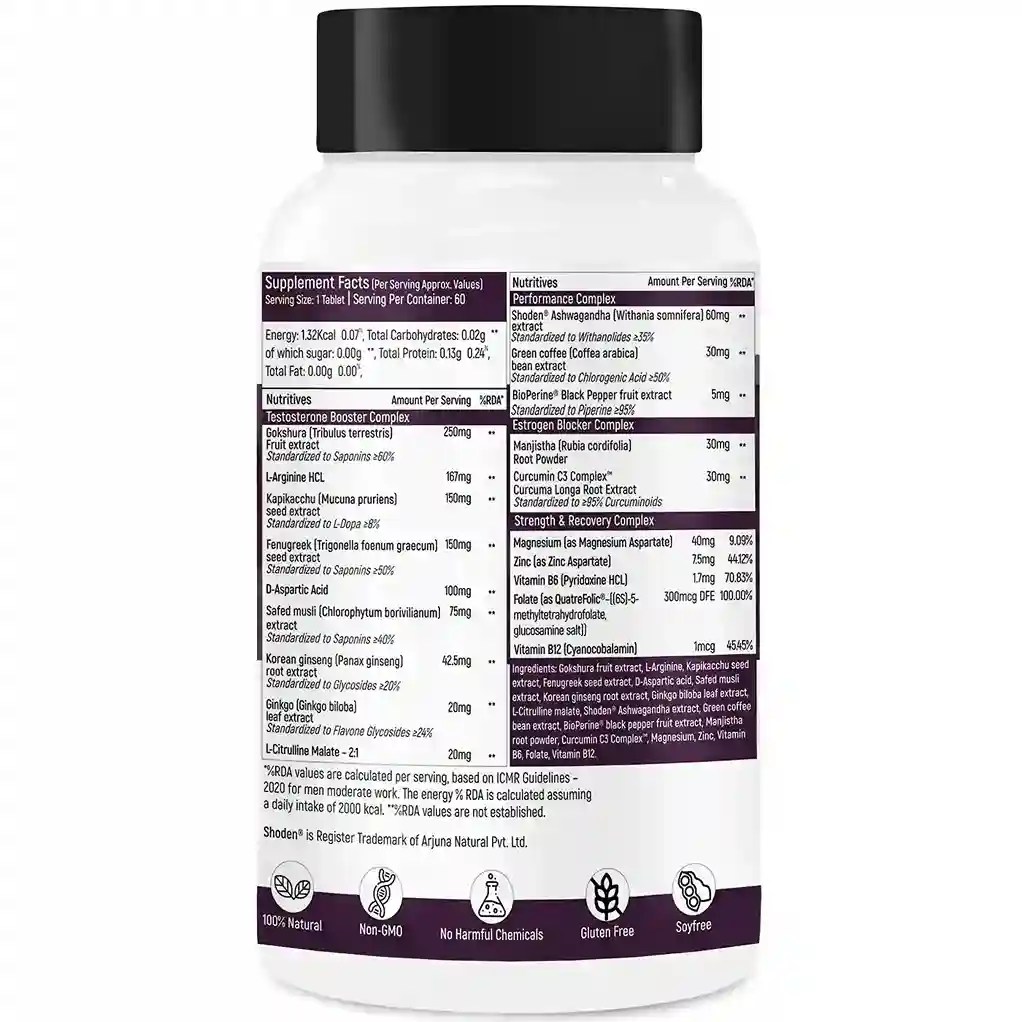 Instafuel Testosterone Booster is a scientifically formulated blend of 11 potent herbal extracts, amino acids, vitamins, and minerals designed to naturally enhance testosterone levels, strength, stamina, muscle growth, and male performance. This advanced formula includes clinically supported ingredients such as Tribulus terrestris (Gokshura), Macuna pruriens (Kapikachhu), Fenugreek seed extract, D-Aspartic Acid, and BioPerine® for superior absorption.